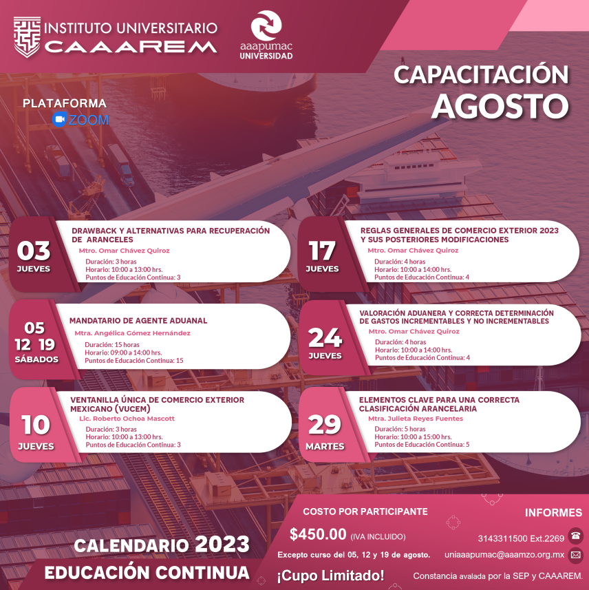 | Licenciatura en comercio exterior, logística y aduanas | Licenciatura en mercadotecnia y clasificación arancelaria |
